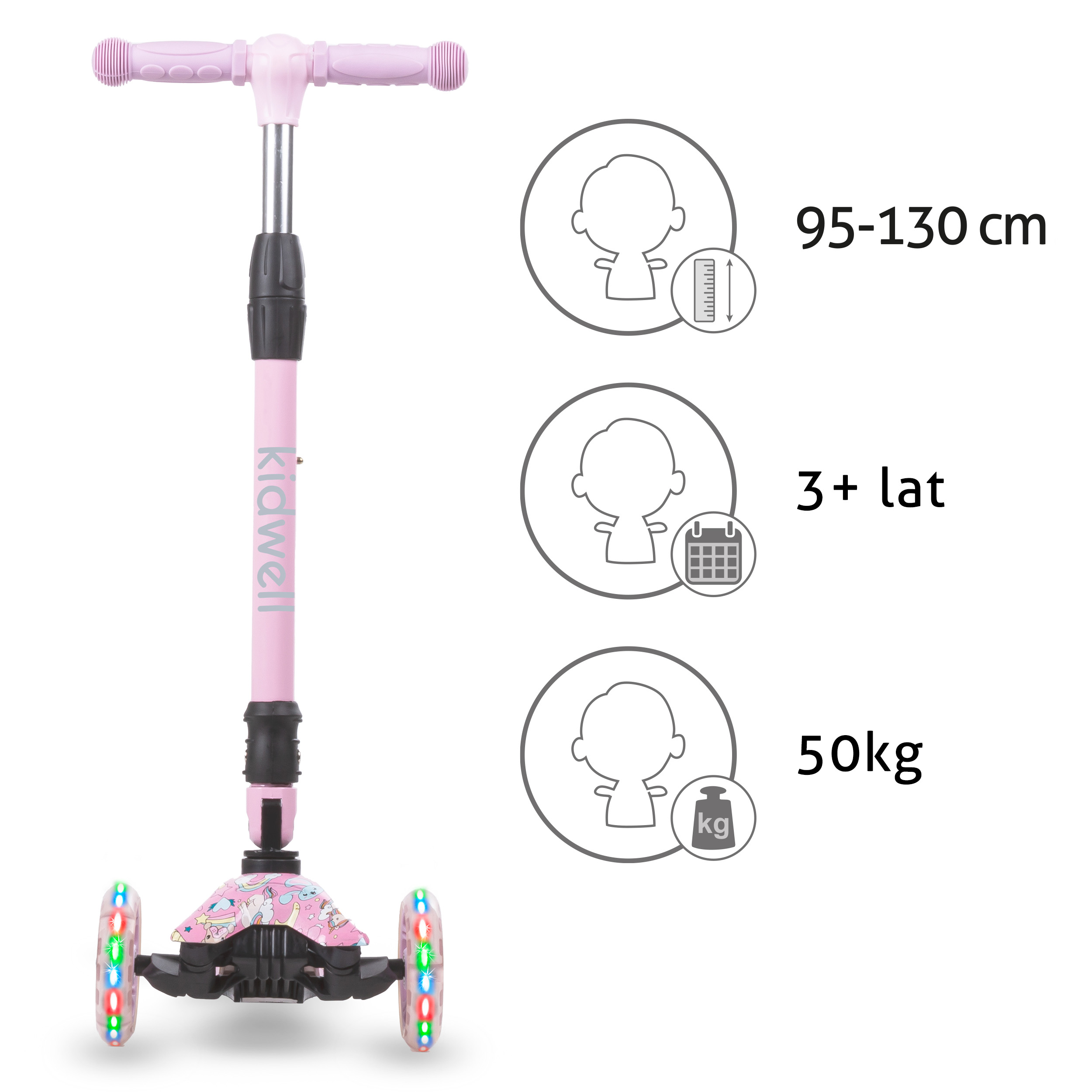 OSTRZEŻENIE: Produkt przeznaczony dla dziecka w wieku powyżej 3 lat i o max wadze 50 kg. Konieczność stosowania środków ochronnych (kasków, rękawic, ochraniaczy na kolana i łokcie, odpowiednich butów). Nie używać w ruchu ulicznym. Do użytku pod bezpośrednim nadzorem osoby dorosłej. By zapobiec upadkom, zderzeniom, czy nawet wyrządzeniu krzywdy osobom trzecim, należy dziecku wytłumaczyć zasady bezpieczeństwa oraz ostrożności.